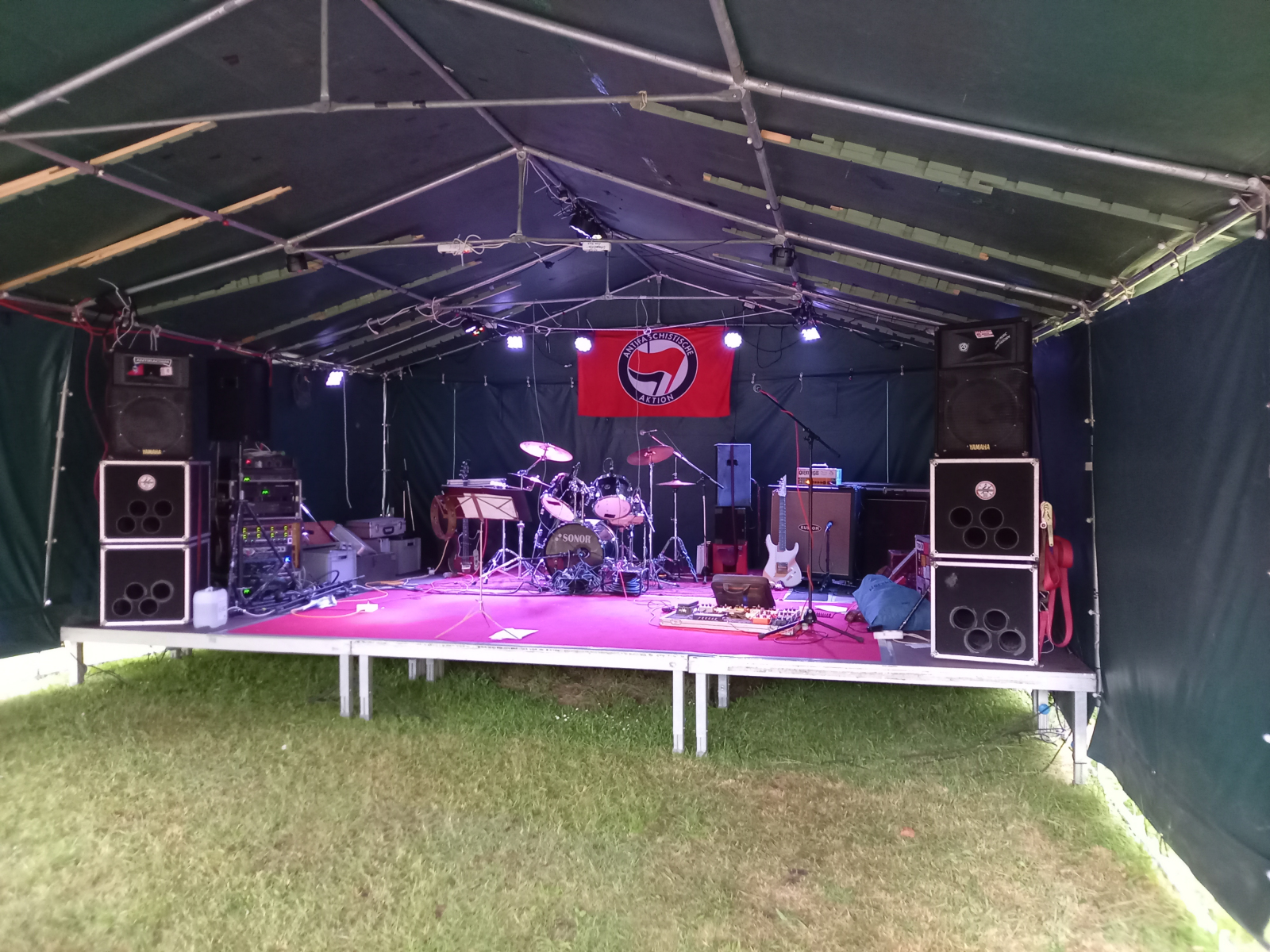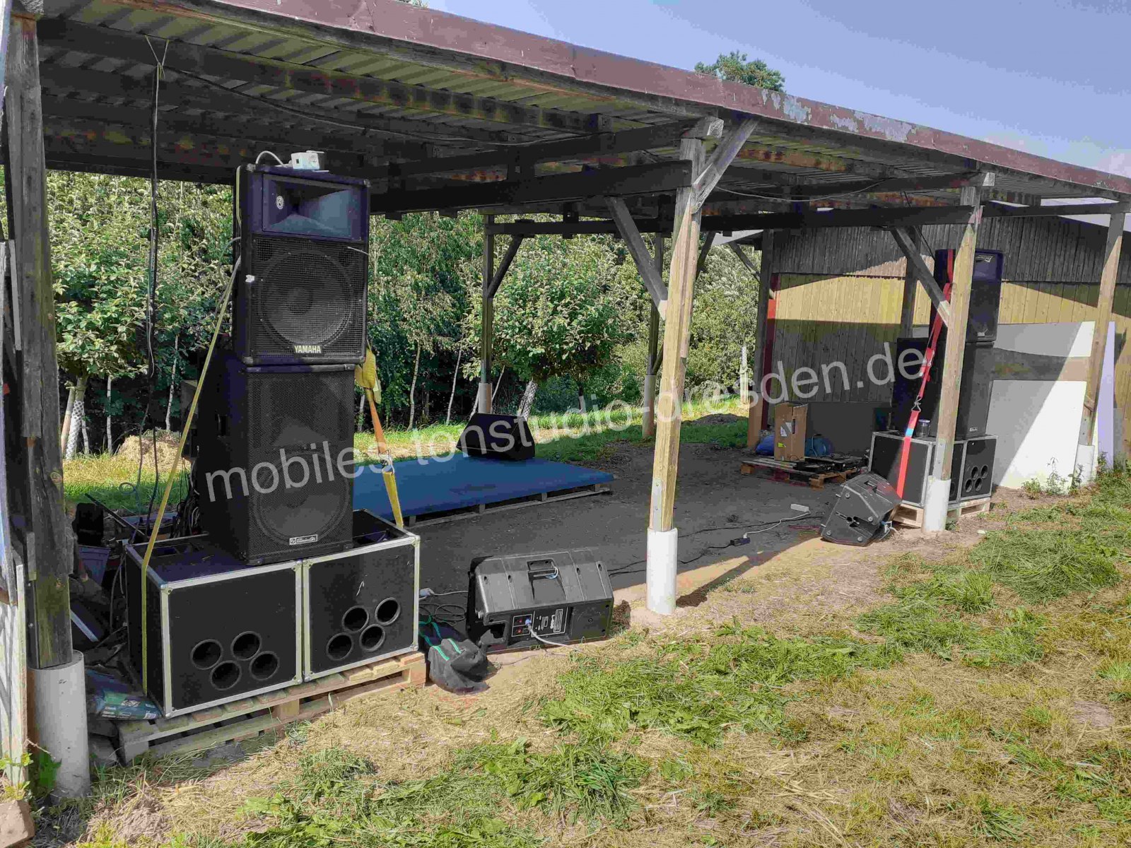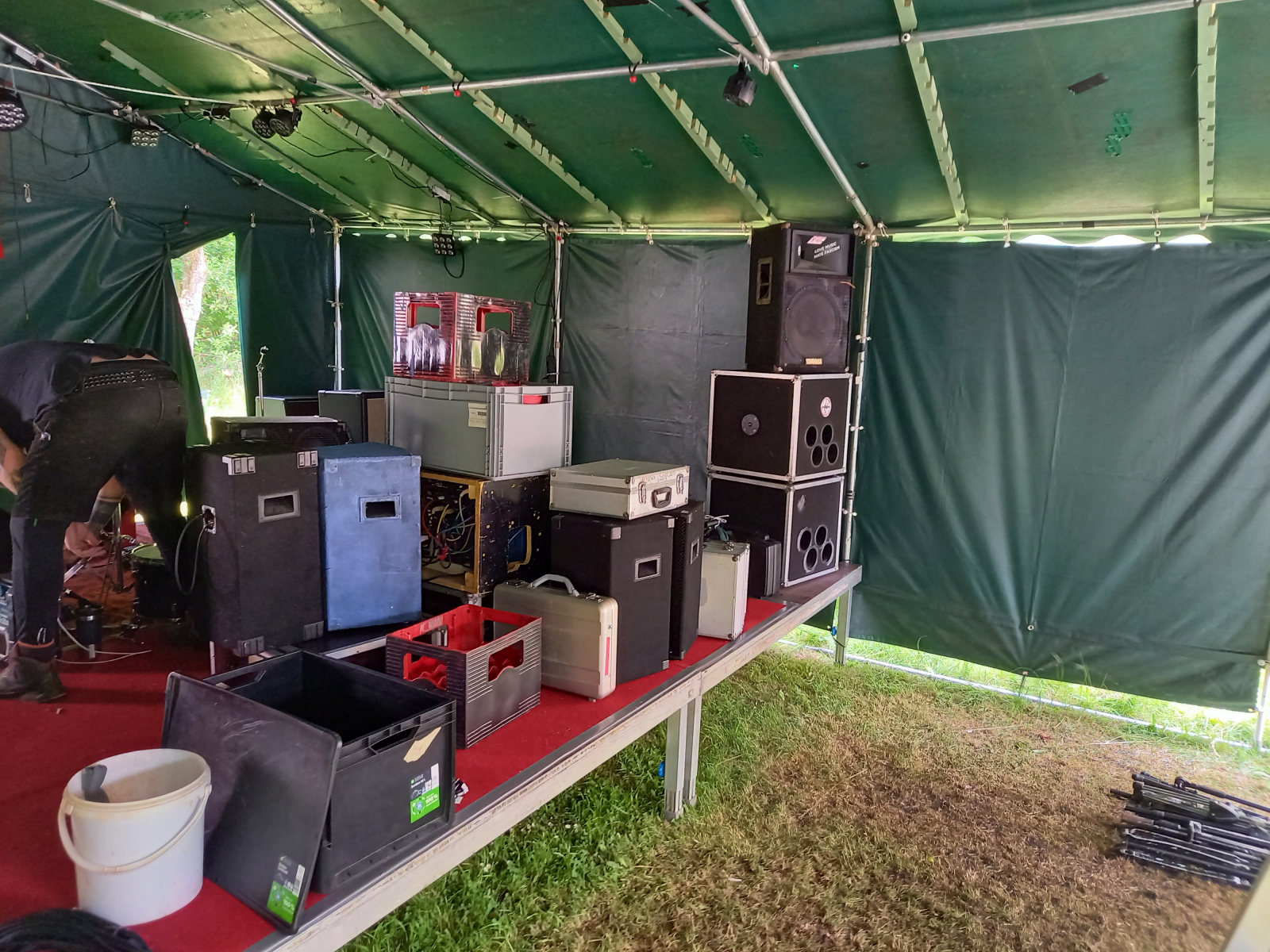 Die PA ist modular aufgebaut. Ich kann euch von einer kleinen Karaoke-Anlage via 6-Kanal-Power-Mixer bis zu 500 Menschen Open Air System eine Beschallungslösung zur Verfügung stellen. 4,5 kW Systemleistung machen ggf. das gegen-den-Bass-Atmen schwierig…