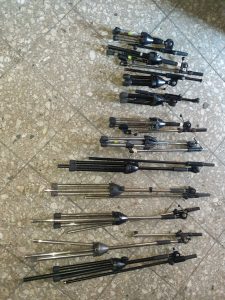 Außerdem habe ich Gitarrenboxen, Bassboxen – und natürlich Mikrofone, Kabel, Stative, …